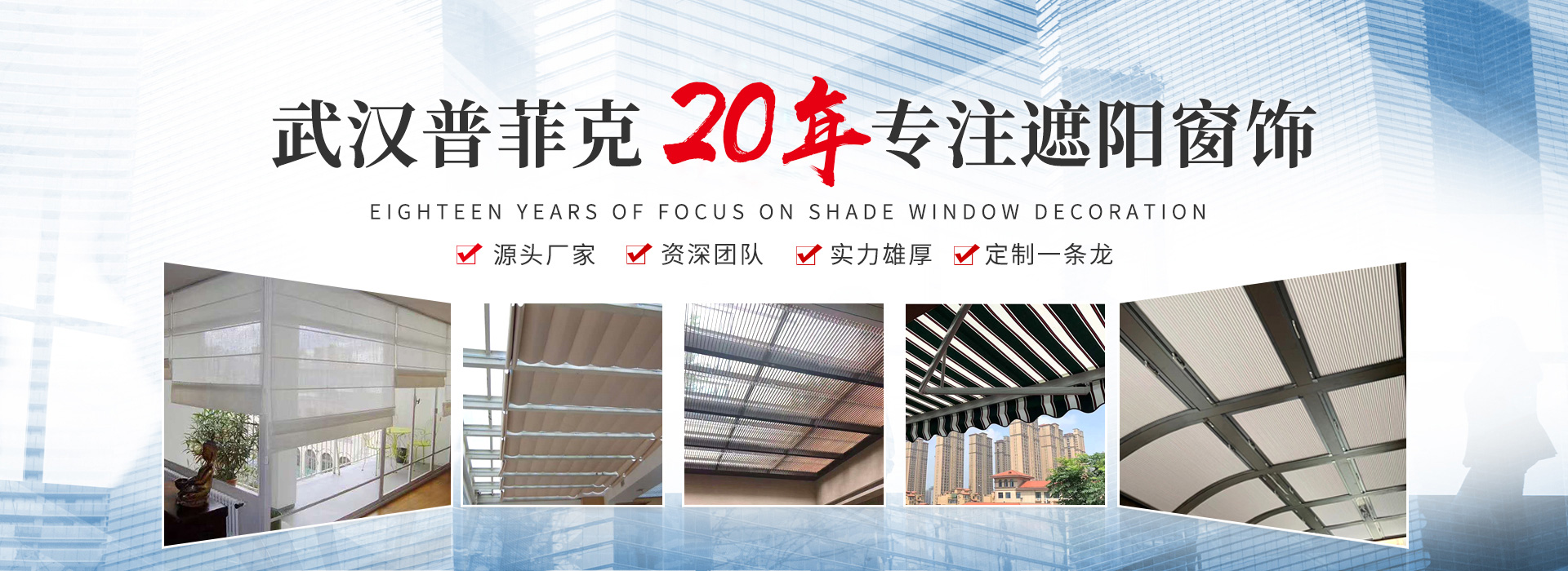 武漢普菲克建材有限公司是一家專業從事家居窗簾、電動窗簾、窗飾及各種工裝類遮陽產品研發、方案集成、安裝售后的供應商。 2002年,公司成立于中國的水陸空交通樞紐——武漢。經過多年的發展,公司的業務范圍... +more